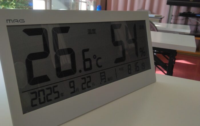 今日教室の温度は何と、26℃で湿度54%。ちょうどいい、快適な気温です。
