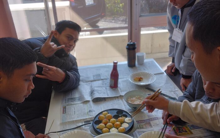 お知らせ 2026.02.10 2026.02.19 実習生と一緒にたこ焼きを作りました 記事のタイトルとURLをコピーする 今日の昼食は、実習生と職員でたこ焼きを食べました。野菜や具材を切ったり、焼いたりする作業は、こちらが指示を出し、実習生たちが調理しました。 みんなで作るたこ焼き タコは好き嫌いがあるため、エビやイカなどで代用しました。初めて食べる人も多く、食べるだけでなく、自分たちで作る工程そのものも楽しかったようです。 午後の授業では、気持ちを切り替えて、きちんと集中して取り組んでくれました。