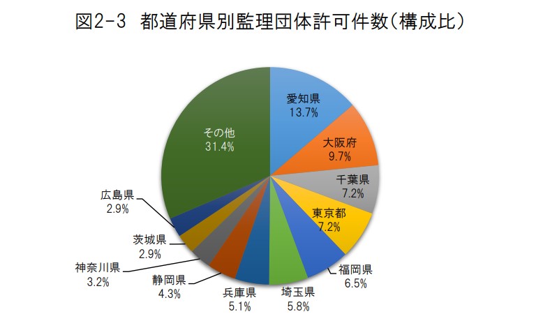 この表からも分かるように、愛知県、大阪府、東京都は特に監理団体が多いエリアです。