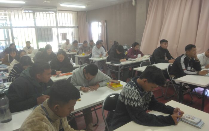 授業の合間には、共通語である日本語を使って、皆が仲良く会話している姿をよく見かけます。教え合い、助け合いながら発音を確かめたり、新しい言葉を覚えたりと、自然に交流が生まれています。