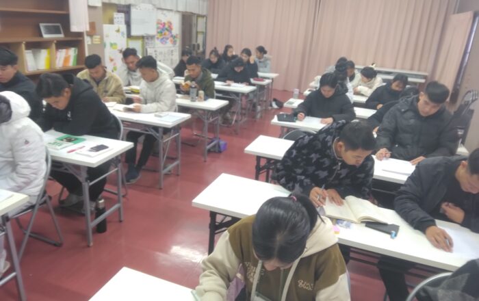 本日の授業の様子です。穴埋めプリントに取り組み、皆が一生懸命勉強している姿が見られました。